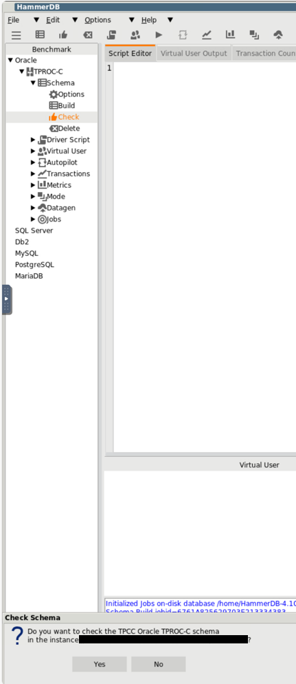 Im selben Schritt findet auch die Konfiguration des Schemas statt. Dies geschieht mit der Angabe der Anzahl von Warenhäusern und virtuellen Benutzern, welche „Bestellungen“ (Transaktionen) auf die Warenhäuser absetzen werden. In unserem Test werden wir 1000 Warenhäuser und 200 virtuelle User anlegen. Die Anzahl ist dem Test-System anzupassen. Es empfiehlt sich mit etwa 400 Warenhäusern pro Server-CPU-Sockel zu starten. Das Verhältnis Warenhäuser zu virtuellen Benutzern sollte bei etwa 1:5 liegen. In keinem Fall jedoch sollten mehr virtuelle Benutzer als Warenhäuser erstellt werden, da dies aufgrund von Lock contention zu keinen repräsentativen Ergebnissen führen würde.
